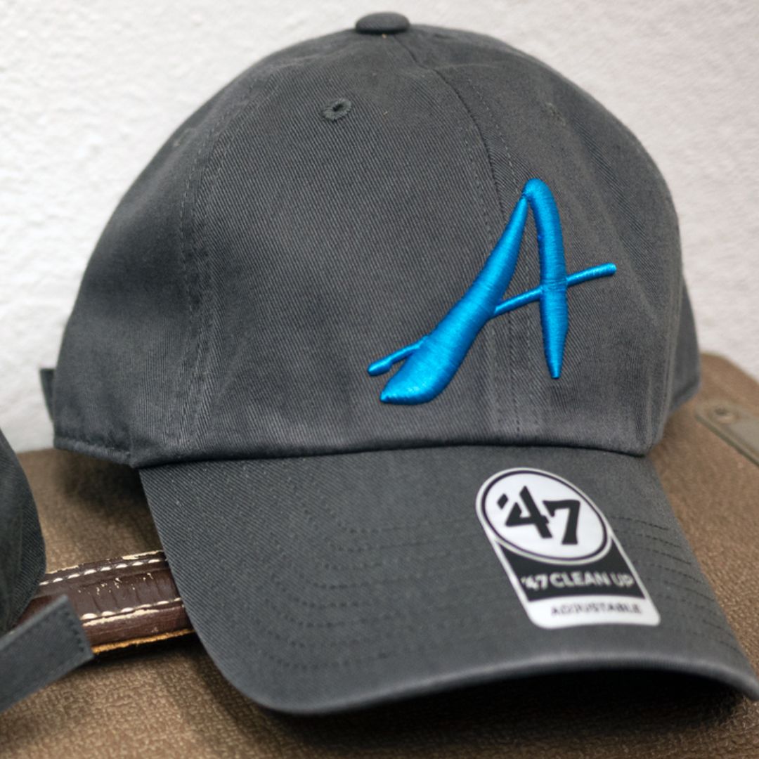 フロントとバッグにロゴの刺繍が入ったミドルクラウンのオリジナルキャップ。「Tom Anderson」と「'47」とのコラボレーショングッズ。