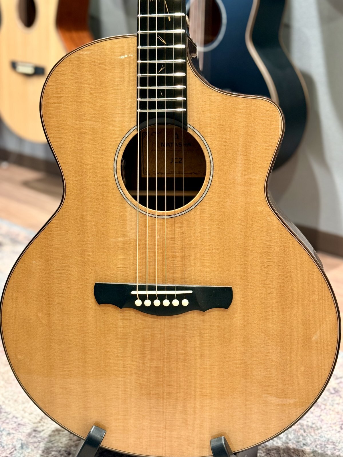 バック&サイド材がマホガニーのJC-1に対して、ローズウッド材を使用したモデルがJC-2。より張りのある明瞭なトーンと、豊かなダイナミクスが特徴。